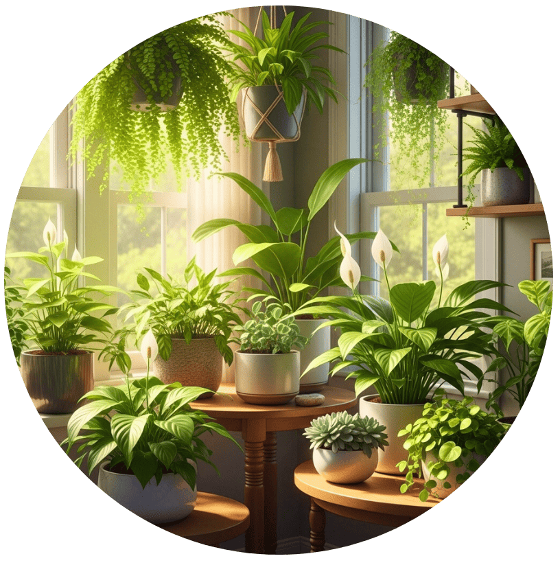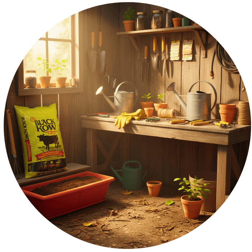 أشجار، نباتات داخلية، شتلات، وأدوات زراعية